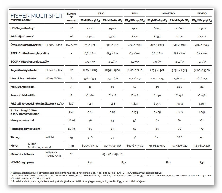 A Fisher FS3MIF-274AE3 Multi klíma kültéri egység (max. 3 beltéri egységhez) fontos tulajdonságai: