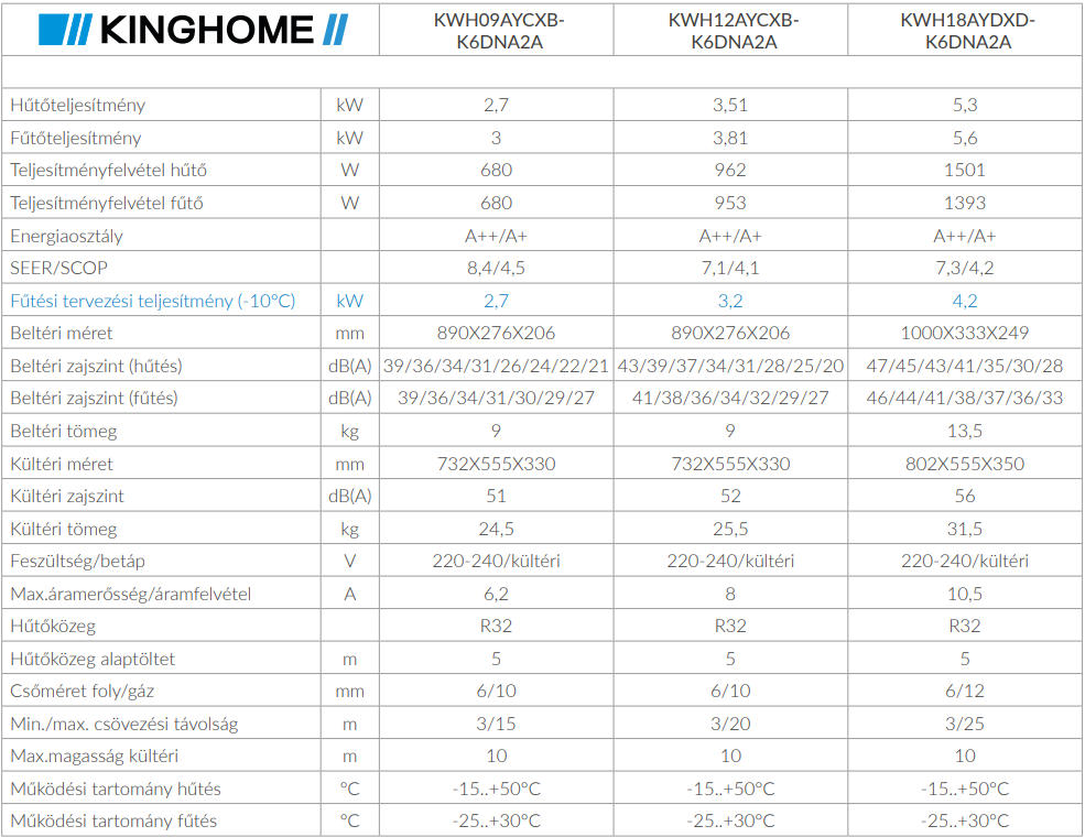 A Kinghome KWH12AYCXB-K6DNA2A Maximus Inverteres Split klíma fontos tulajdonságai: